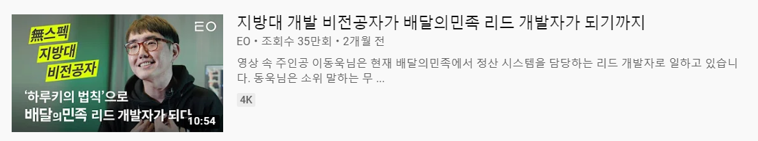 그러던 어느날 우연히 유튜브 광고에서 배달의 민족에 계시는 선배 개발자님의 영상을 봤었다