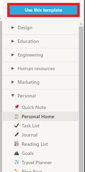 저는 Personal Home 템플릿을 선택했습니다.