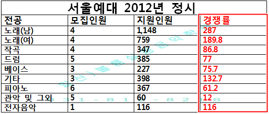 이유는 음악계가 상당히 좁기때문에 좋은 대학에 대한 욕심이 저절로 생겨나고 그로인해 모든 시야가 대학에 집중되기